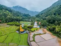 🌾⛅ Take a tour of a beautiful temple in the middle of a rice field, "Wat Nakuha," in Phrae Province. 🛕✨