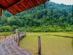 A small temple nestled amidst nature, it offers a peaceful atmosphere, surrounded by lush green rice fields. 🏞️ Perfect for those seeking a place to unwind, breathe in the fresh air, and take beautiful photos. 📸