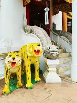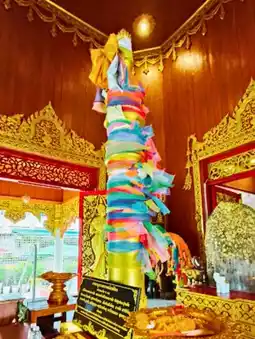 💢What's unique about the Phrae City Pillar Shrine is that the new pillar stands alongside an ancient inscription, the original city pillar of Phrae. This inscription, written in Ahom Thai script, describes the construction of Wat Si Bun Rueng during the reign of King Ramkhamhaeng the Great. This is a significant historical evidence linking the history of Phrae. Therefore, if you visit Phrae, don't miss paying respects to the sacred objects and learning about the city's history at this place. This place promises good fortune and is also a perfect reflection of the elegance of Lanna architecture.