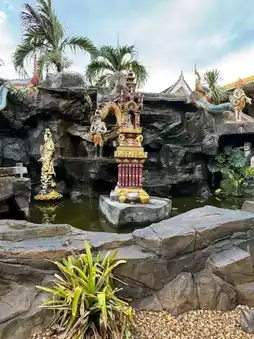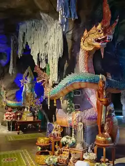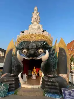 Wat Sawannivet, located in Mueang Phrae District, Phrae Province, is a small temple situated opposite Wat Chom Sawan. The temple features a beautiful Lanna-style ordination hall, a pagoda, the Phaya Naga Cave adorned with stunning lights, and the world's largest Rahu statue. The serene atmosphere of the temple makes it an ideal place for meditation, chanting, and offering prayers. The Phaya Naga Cave exudes a mystical aura, while the grand Rahu statue and the presence of revered monks add to the temple's spiritual significance.