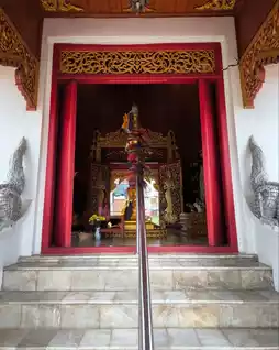 #GetDiscountsWithoutLuck The Phrae City Pillar Shrine is located in the heart of the city, opposite the residence of the Phrae City Lord. The shrine itself is built in the Lanna-style four-sided pavilion style. Upon ascending, you'll find the City Pillar. Further inside, you'll find an ancient stone inscription from the Sukhothai period, and at the far end, the Phra Siam Devathiraja. Those who come to pay their respects pray for good fortune, happiness, and career advancement.
