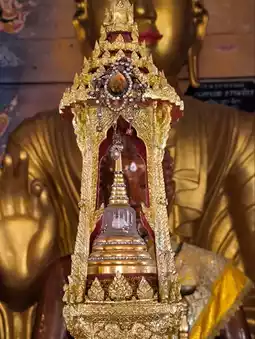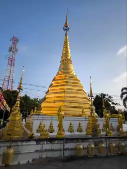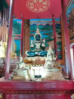 Wat Phong Sunan, an ancient temple located within the old city walls of Phrae, is home to the principal Buddha image, Phra Chao Saen Suk, which is over 570 years old. The temple also features the Glass Vihara with 108 spires, housing sacred relics and a wooden Phra Surasawadee statue made from jackfruit wood, along with stunning mural paintings. Along the temple wall, there is a large reclining Buddha, and to the right, a beautifully preserved ancient scripture hall. The side gate showcases a golden stupa, a giant turtle, and a standing Buddha image known as Phra Chao Thanjai. Visiting Wat Phong Sunan to pay respects and make wishes is believed to bring happiness, career advancement, and safe travels.