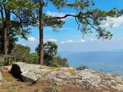 Another stunning viewpoint along the cliffside trail of "Phu Kradueng," Pha Nan Noi is located approximately 2.7 kilometers from the Wang Kwang Visitor Center. To reach it, follow the path from the Buddha statue and turn towards Sa Kaeo. Pha Nan Noi features a rocky plateau at the edge of the cliff, offering breathtaking views of the surrounding mountains and the beautiful Phu Pha Chit. The area is shaded by pine trees, with a cool breeze making it a perfect spot to relax and enjoy the scenery before continuing to the next destination.