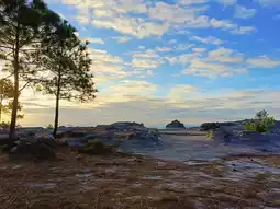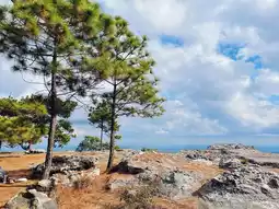 Another outstanding and interesting tourist spot on Phu Kradueng. In addition to the beautiful mountain view on the cliff, the attraction for tourists is the high rocks that look like small clouds. Tourists like to stand up and take pictures, giving the feeling of stepping on clouds. The camera angle makes it look like you are floating in mid-air. In addition to being a popular photo spot, you can also sit and watch the sunset. The view is just as beautiful as Pha Lom Sak or Pha Mak Dook.