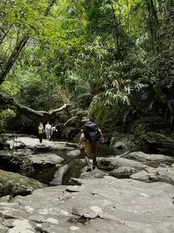 I wore barefoot sandals, which turned out to be super comfy: light, no blisters, and perfect for walking through water. The trail is clearly marked with yellow paint, so it’s easy to follow even deep in the jungle 🟡🌿