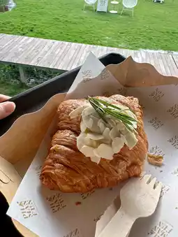 Crispy and fragrant almond croissant. The food was so beautifully served that I had to grab my phone to take a photo before eating. 🥐💛