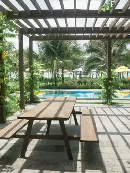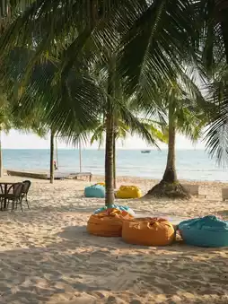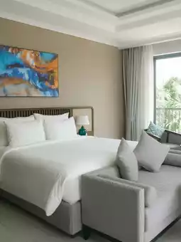 This newly opened resort on Phu Quoc Island is absolutely stunning 😍. It has a very relaxing vacation vibe and all the facilities are brand new and clean. The villa has three bedrooms, so it's not expensive to share with six people. Perfect for a family or friends vacation. The best part is that it has a private beach 🏖️. You can walk to the beach in just one minute and there's even a hammock.
