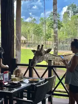 Feeding a giraffe right in front of you at the Giraffe Restaurant