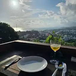Chuon Chuon Bistro is located on a hilltop overlooking the stunning view of ocean and mountains. You can see the sunset over the sea at dusk, and the stunning night view of the city center of Phu Quoc at night.