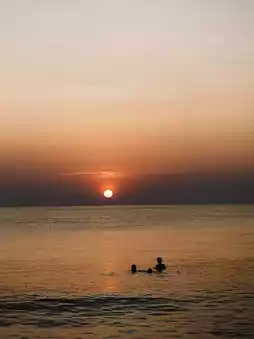 🟡First it slowly falls, turning into a huge orange ball, and then it drops below the horizon in a flash. After that, the color of the sky begins to change, and finally a pink-purple halo appears on the edge of the horizon.