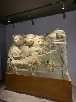 The museum's exterior looks like a giant doughnut, and a cute giant polar bear leans on the side to welcome every visitor.