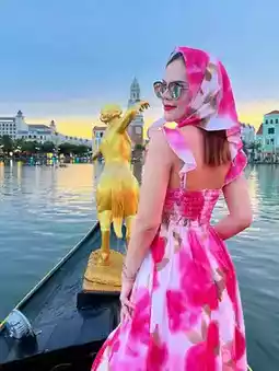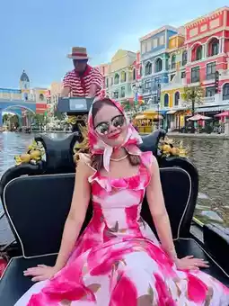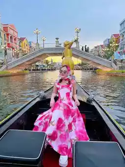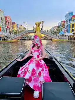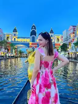 Take a cool boat ride to see Grand World and see the beauty of the buildings. The boat ride costs 200,000 VND per person, which is about 150 baht. The boat driver will stop at the clock tower for us to take pictures until we are satisfied. He will also take pictures for us. It is a great service.