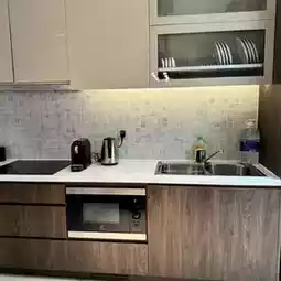 1 king-size bed, 1 bathroom, living room, kitchen & dining table