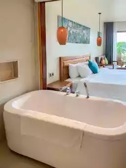 Camia Resort is located in the middle of the road from central to northern Phu Quoc. It is an 18-minute drive to Grand World in the north and a 23-minute drive to King Kong Mart in the center, making it a great place to visit both areas.