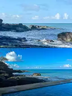 Kamia Resort has two pools. One of them is an infinity pool connected to the ocean. When you swim here, you feel as if you are floating on the ocean. Interestingly, this pool is a saltwater pool, so the water tastes salty. Also, it is a heated pool, so you can enjoy swimming warmly anytime from 7 am to 7 pm. The water depth is 1.2 m, which is appropriate, and there is a kids' pool next to it, so it is also good for families.