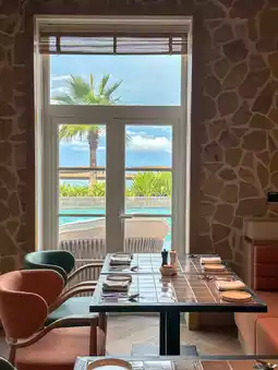 Merchant restaurant has a spacious and bright atmosphere, and the tables and seats are well arranged. The tables are a little close together, so it may be a bit uncomfortable, but the overall restaurant structure is comfortable and cozy. Natural light comes in through the large windows, making breakfast even more pleasant.