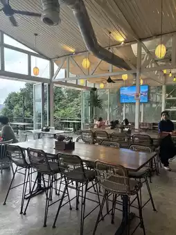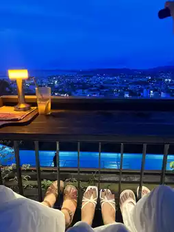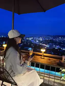The outdoor seats where you can see the city and the sea together were very popular. Since it's one of the famous places for sunset, the outdoor seats were quickly filled up at sunset.