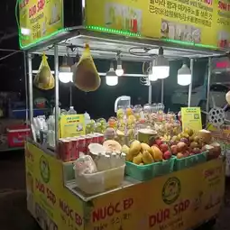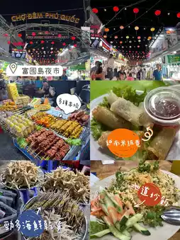 One of the highlights of the night market is the incredible selection of fresh seafood. Grilled prawns, squid and shellfish are prepared right before your eyes, offering a true taste of Phu Quoc's coastal culinary heritage. You'll also find an array of local specialties like pepper crab, sea urchin, and tropical fruit desserts, making it a food lover's paradise.