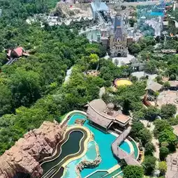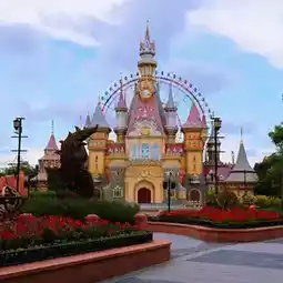 The place is spacious, very beautiful, with rides, a water park, and many shows. There is a free shuttle service to the theme park, shops, souvenir shops, and a large aquarium.