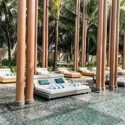 Regent Phu Quoc offers an unparalleled blend of luxury and tranquility. Located near Long Beach, the resort features contemporary suites and villas with private pools and panoramic ocean views. The dining experience is elevated with options like the sophisticated Oku for Japanese cuisine and the Rice Market for Vietnamese delicacies. Spa treatments and personalized wellness programs make it a haven for relaxation. Ideal for honeymooners or families looking for upscale comfort, Regent Phu Quoc creates a personalized retreat in paradise.