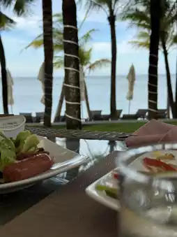 I booked a garden view room, but the balcony still offered a distant sea view, which was a pleasant surprise. The only downside was the lack of a bathtub in the room. That evening, we chose to dine at the hotel, which has two restaurants: one serving Thai cuisine and the other a Western restaurant. I ordered Thai food, and the staff thoughtfully delivered it to the Western restaurant so we could enjoy different dishes together.
