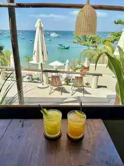I ordered a pineapple juice and an orange juice. The vitamin colors look great against the blue ocean!