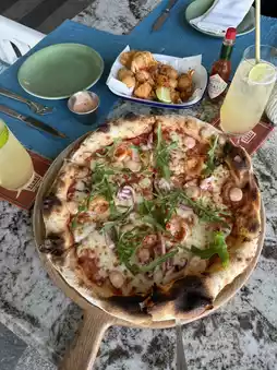 The seafood pizza was so large that we shared it between the two of us and it filled us up! Delicious all the way to the edges. The shrimp also had a nice texture and was spicy and delicious.