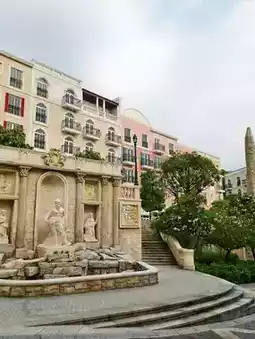 For a leisurely trip, it's recommended to visit Sunset Town in the afternoon. There are various famous European landmarks like the Colosseum, Trevi Fountain, and Park Güell in Barcelona, perfect for taking photos. In the evening, we dined at the Venice Hotel's Restaurant for pizza, then headed to the Loop Jacuzzi Bar for a drink, enjoying the Symphony of the Sea laser water show and fireworks up close. The music atmosphere at this poolside bar is great. Tickets for the show are VND250,000 per person, but it's worth seeing! Finally, we strolled through the night market and the Vietnam Select supermarket, buying souvenirs to take home.