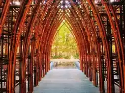 The Grand World Visitor Center on Phu Quoc Island was designed by Vo Trong Nghia Architects. The design team used 42,000 bamboo poles to weave a dense grid structure, creating an arched building that serves as the gateway to the Grand World eco-resort.