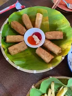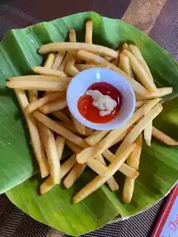 Since there's no air conditioning, it was quite hot. The fried items came out first—French fries and spring rolls!