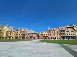 It is a European-style castle zone. It is the first zone after passing the entrance. There are restaurants, shops, souvenir shops.