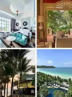 Located on the west side of Phu Quoc Island, it offers stunning sunset views. Nearby is its sister hotel, InterContinental. The property features 4 pools, including two rooftop pools🏊♀️. With 6 restaurants and bars, it serves a variety of cuisines like Japanese, French, and Southeast Asian fusion. Room options are diverse, ranging from ocean-view suites to sky pool villas🏠, lagoon pool villas, and beach pool villas, some with expansive terraces and private pools.