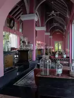 Department of Chemistry Bar at JW Marriott Phu Quoc Emerald Bay Resort & Spa is a uniquely themed bar that blends science and mixology into an immersive experience. Designed to resemble a vintage laboratory, the bar is filled with tubes, beakers, and chemical elements, creating a playful yet sophisticated atmosphere.