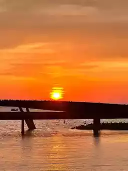 The coast of Phu Quoc Island at dusk is dyed golden red, and the sky and the sea are connected in a line. It is as beautiful as a painting no matter how you take it.