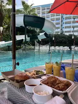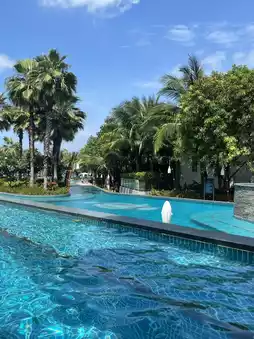 The swimming pools are designed with varying depths, catering to both children and adults. Additionally, there are shower facilities available, allowing guests to enjoy the pool even after checking out.