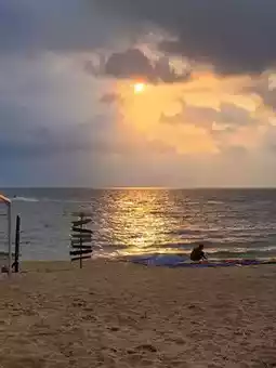 Sitting under the shade of palm trees, gazing at the sea, it felt as if the world had paused for a moment. The sunset scattered through the clouds, creating a scene more cinematic than any photograph…🌤️