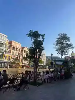 🎡 The entire park is centered around a canal, flanked by vibrant European-style buildings whose reflections shimmer on the water, creating an unreal beauty. Along the banks, countless cafes, souvenir shops, and Vietnamese snack stalls invite you to savor the local flavors as you wander.