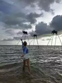 It’s a full experience designed for those who want to slow down, feel the moment, live the sunset like a ritual — and discover art through countless statues and sculptures scattered across the area.