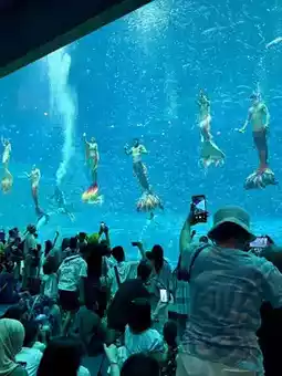The mermaid show is the highlight, with 2 sessions per day (it is recommended to grab a seat half an hour in advance). The performers are dressed in gorgeous mermaid costumes, dancing in the water tank, interacting with the fish, showing elegant postures, dazzling.