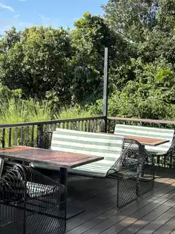 There are seats both indoors and outdoors, but it was very hot outdoors...
