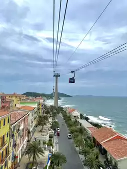 To get to this island, you have to take a cable car across the sea. The cable car ride is almost 8 kilometers long, which we recommend you to come once because it is very beautiful. You can see the sea as far as the eye can see. It takes almost 20 minutes to get to the amusement park.