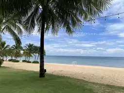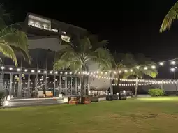The outdoor dining area at night feels like a fairy tale setting, with strings of lights and lanterns illuminating the lawn, creating an overwhelmingly romantic atmosphere. The restaurant's seafood dishes are so fresh they melt in your mouth, and the staff are friendly, attentive, and meticulous. Surrounded by swaying coconut trees, the hotel is just a short walk to a fine sandy beach, making it ideal for travelers seeking nature and tranquility.