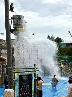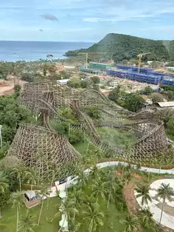 The park is divided into a water park and a land park. The water park, Aquatopia, features a variety of water attractions, including a lazy river, a man-made wave beach, a children's play area, and thrilling high-speed and rotating water slides, perfect for guests of all ages. The land park boasts Vietnam's first wooden roller coaster and a 360-degree rotating observation deck.