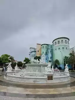 Featuring European-style architecture such as St. Mark's Bell Tower, the Colosseum, and the Zigzag Staircase, the village, along with the Kissing Bridge, is a perfect sunset photo op. In the evening, the setting sun paints the buildings a golden hue, blending seamlessly with the azure ocean, creating a captivatingly romantic atmosphere. The world's longest sea-crossing cable car connects the village to Sun World Huong Dao Nature Park, offering breathtaking ocean views. The town's bustling night market offers Vietnamese snacks and performances, including a water puppet show and the "Ocean Kiss" water dance fireworks show, a stunning combination of light and sound effects.