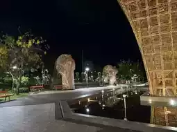 Công viên Nghệ thuật Đương đại Urban Park is a 5,000-square-meter outdoor art space in Grand World that seamlessly blends contemporary art with the natural beauty of Phu Quoc Island 🌿. Designed by IRMS, the company behind Universal Studios and Genting, the park exudes an international vibe while retaining a Vietnamese essence 🏛️. The park is filled with large sculptures nestled among trees and fountains, creating the feel of an open-air museum 🎨. The area is clean, with convenient walkways, making it ideal for families and art-loving tourists 🧑🤝🧑. In the evening, the park is beautifully lit, and there are occasional live music or street art performances 🎶. However, it can get crowded and hot during the day on holidays, so bringing an umbrella or sun hat is advisable 🌞.