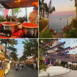 Both sides of the street are lined with vendors selling grilled meats, seafood, sausages, and fruit smoothies. There are also restaurants where you can enjoy a meal while enjoying the sea view and the sunset.
