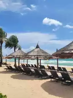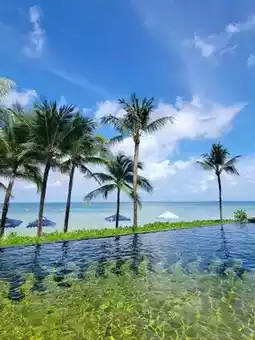 Both hotels are located in the golden location of Phu Quoc Island. The Emerald Bay Marriott Hotel (address: Bai Khem, An Thoi, Phu Quoc) features a private beach and stunning pool, and everything around Sheraton Phu Quoc Island Long Beach Resort (address: Dương Tơ, Phú Quốc) is a choice for leisure vacations, sooo chill! 🛌The hotel's facilities and buffet are great, you can relax all day without going out ~