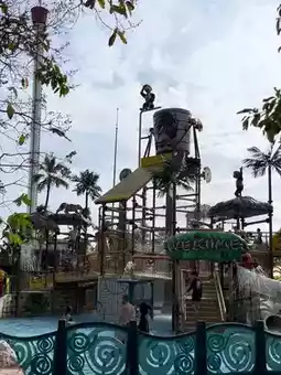 Aquatopia Water Park, also known as #AquatopiaWaterpark, is a water park located on Hon Thom Island. You'll need to take the #honthomcablecar from #Phu Quoc Island to get there. Aquatopia is the largest water park in Southeast Asia. It's clearly divided into different zones, including a food zone, a ride zone, and a children's water park. There are over 20 rides here. The entrance fee is 700,000 VND per person, including the cable car ride. You can use all rides, with no time limits. It's a fantastic value!