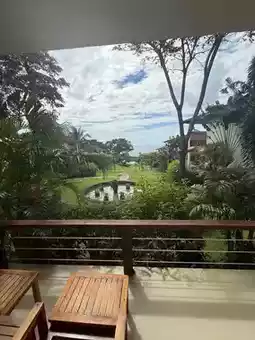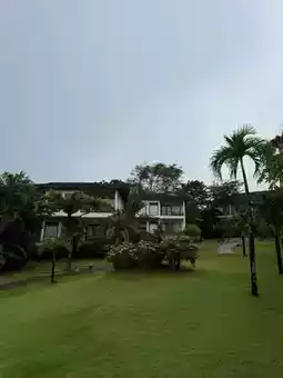 The resort is surrounded by lush greenery — tall trees, colorful flowers, and carefully maintained gardens that make every path feel like a nature walk. You can feel the connection between the landscape and the architecture; everything blends so beautifully.