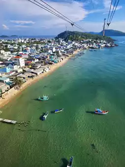 It is recommended to leave in the morning and take the first stop to the Hong Island Park Cross-Sea Cable Car (22G5+29C Bãi Đất Đỏ, An Thới, Phú Quốc), which operates from 09:00-17:00 and tickets for about $182. The longest cross-sea cable car in the world, with unbeatable 360-degree sea views along the way, especially in sunny weather, the sea views are as blue as jelly. The cable car ends at Hong Island Park where you can play the water world, suitable for those who like to have fun but are afraid of the heat.